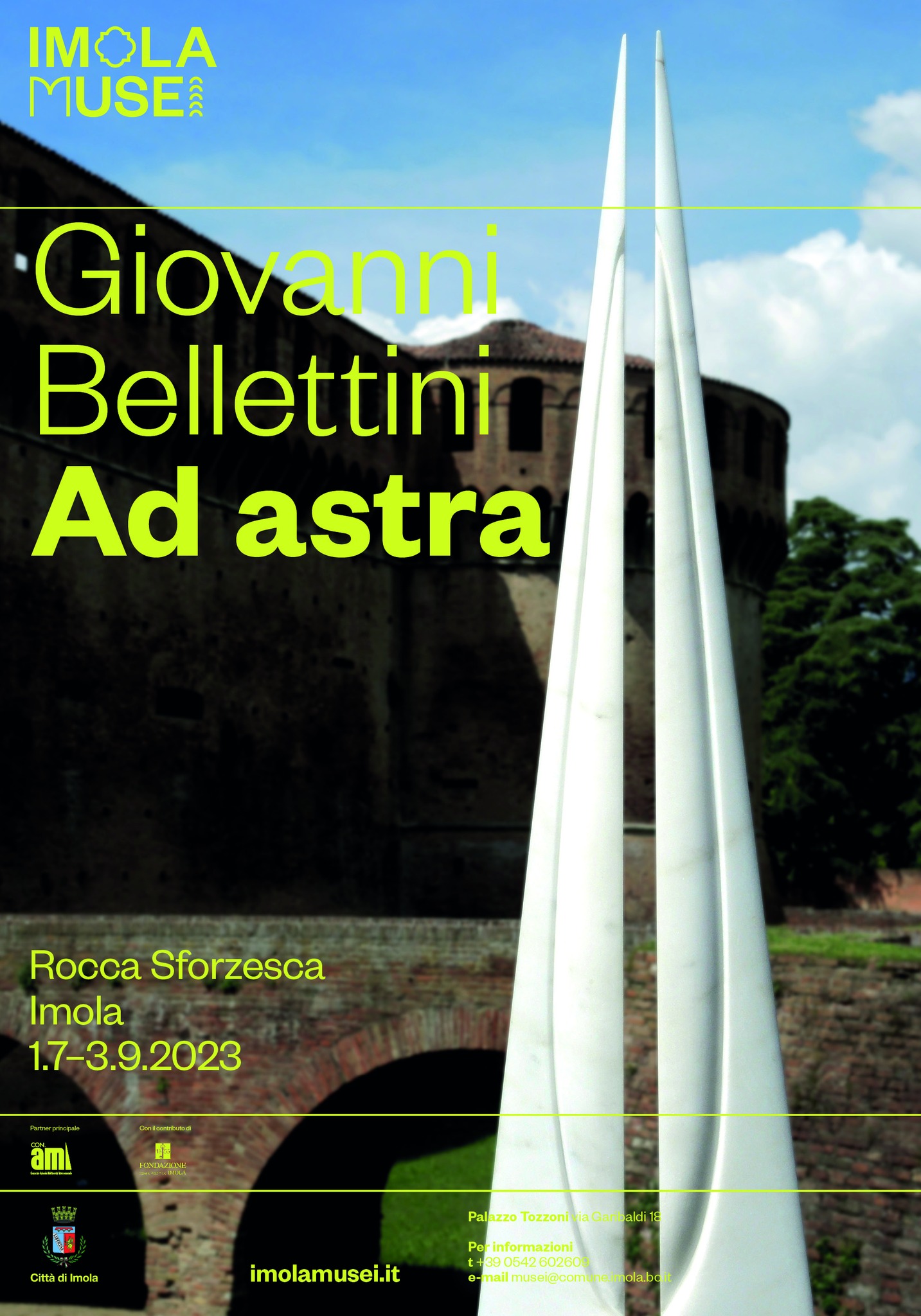 “Dedicare a Giovanni Bellettini una mostra personale, che ha tutti i connotati di una antologica, è un atto di profondo rispetto, riconoscenza e ammirazione per un artista che ha saputo sempre tendere “Ad astra”, come recita il titolo dell’esposizione, nella sua pluridecennale ricerca artistica. Per questo abbiamo condiviso con lui la scelta della Rocca sforzesca, il monumento più rappresentativo di Imola, al tempo stesso “opera d’arte” e “contenitore” di opere d’arte, come luogo dell’esposizione – spiegano il sindaco Panieri e l’assessore Gambi -. Un abbinamento fra storia e attualità che abbiamo già sperimentato con successo in questi ultimi due anni, alla Rocca sforzesca. L’esposizione, inoltre, è l’occasione, ben illustrata dal catalogo, anche per rileggere con uno sguardo nuovo le grandi sculture, veri e propri monumenti realizzati dall’artista in vari spazi pubblici di Imola, che disegnano una sorta di mostra a cielo aperto, da visitare avendo come punto di partenza proprio la Rocca Sforzesca”.
