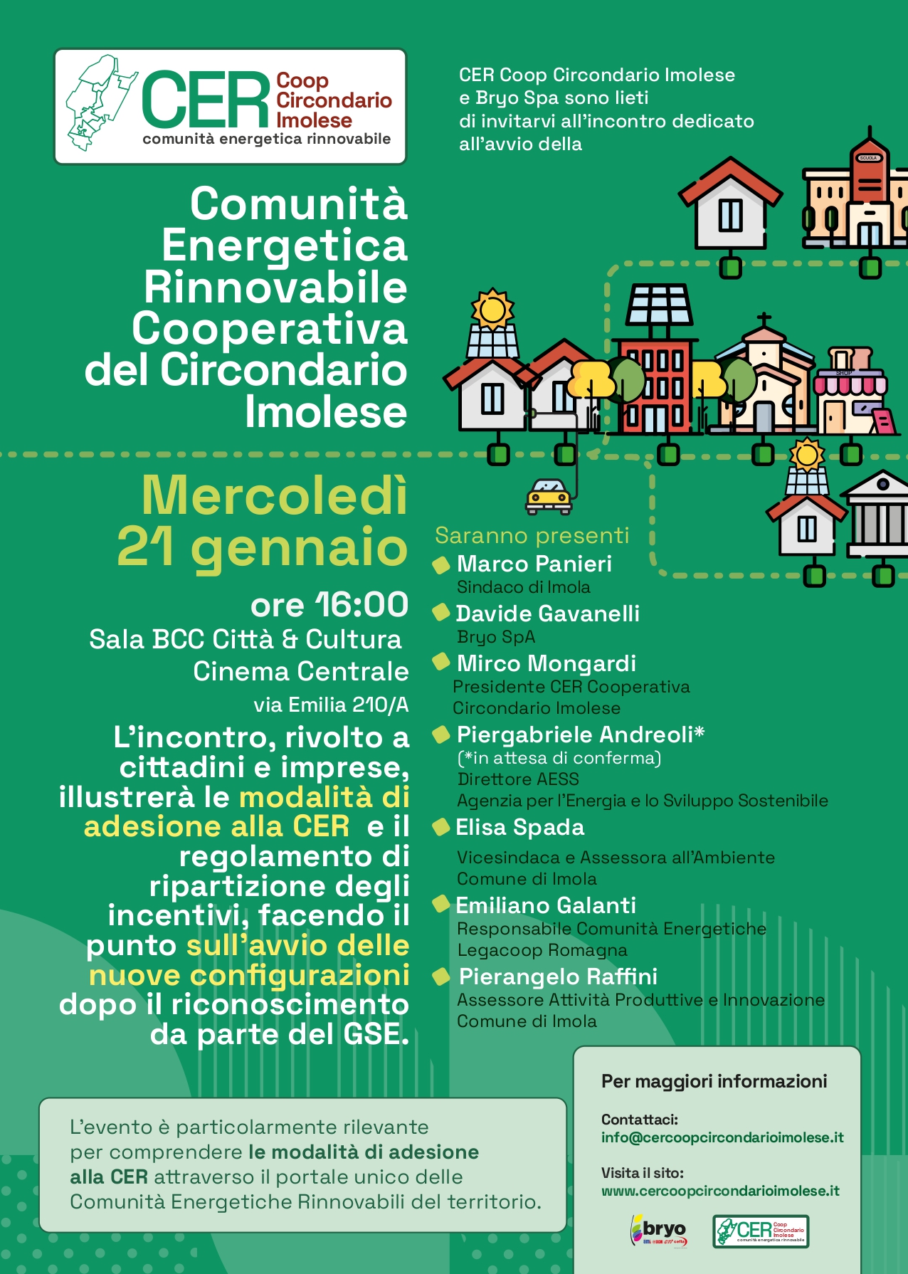 “Le Comunità Energetiche rappresentano uno strumento strategico per accompagnare i territori nella transizione energetica. Bryo accompagna il progetto fin dalle sue fasi iniziali, lavorando per tradurlo in risultati tangibili, mettendo a disposizione della CER Coop Circondario Imolese oltre 6 MW di impianti fotovoltaici nel 2026. Nel ruolo di soggetto referente garantiamo solidità tecnica, continuità gestionale e trasparenza, per favorire un’adesione consapevole da parte di cittadini e imprese e la costruzione di un modello energetico collaborativo e sostenibile” aggiunge Davide Gavanelli, CEO di Bryo Spa.