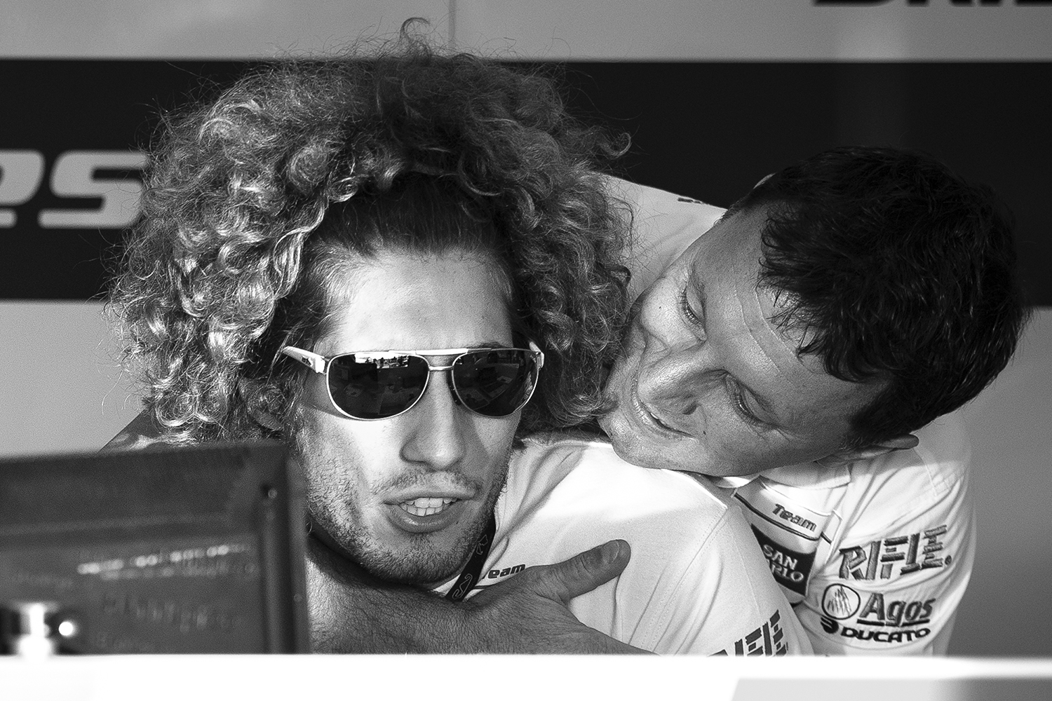 Proprio la capacità di cogliere a fondo il lato emotivo dei protagonisti delle sue fotografie rende il progetto di Mirco Lazzari molto più che un reportage di una carriera sportiva, avvicinandolo piuttosto a un racconto partecipato e affettuoso, sostenuto dal sentimento dell’amicizia. “Questo progetto – racconta Mirco Lazzari – è un omaggio a un ragazzo speciale, che ha regalato grandi emozioni. Per ricordare una persona come Marco Simoncelli, che viveva di emozioni, credo sia fondamentale provare a ritrasmetterle, cercando di farle rivivere attraverso quello che di lui ancora abbiamo nella mente: i ricordi e, appunto, le immagini”.