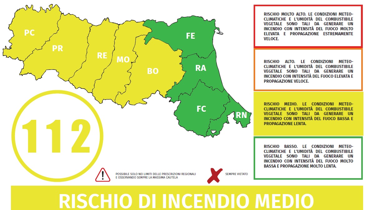 Da mercoledì 8 aprile è attiva la fase di attenzione per incendi boschivi nelle province di Bologna, Modena, Reggio Emilia, Parma e Piacenza.