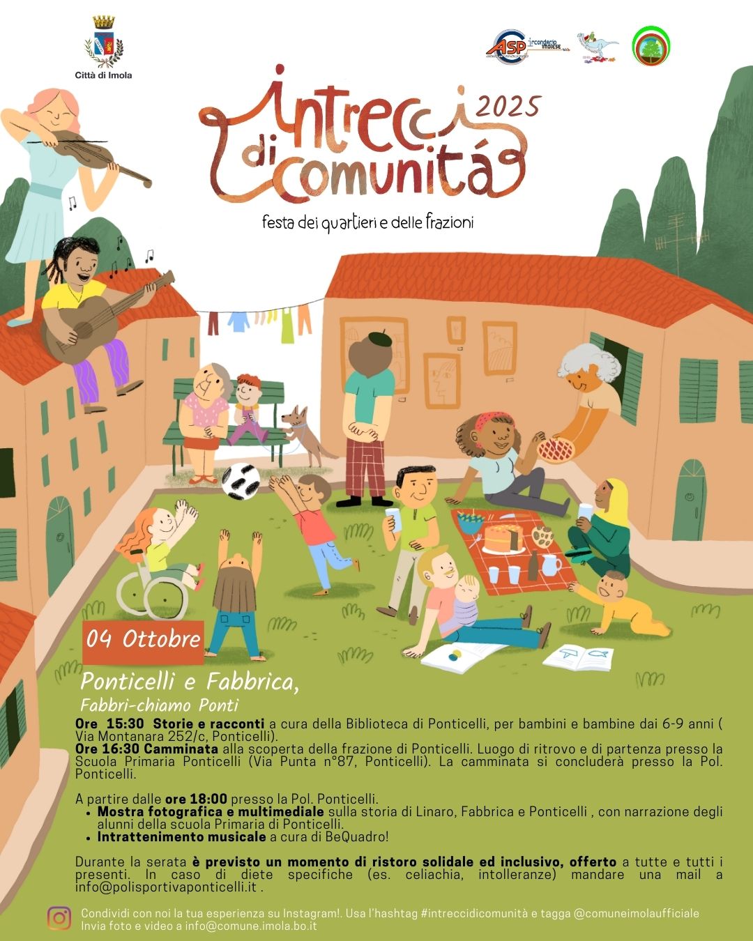 - Ore 16:30 Camminata alla scoperta della frazione di Ponticelli. ,Luogo di ritrovo e di partenza presso la Scuola Primaria Ponticelli (Via Punta n°87, Ponticelli). ,La camminata si concluderà presso la Polisportiva Ponticelli.