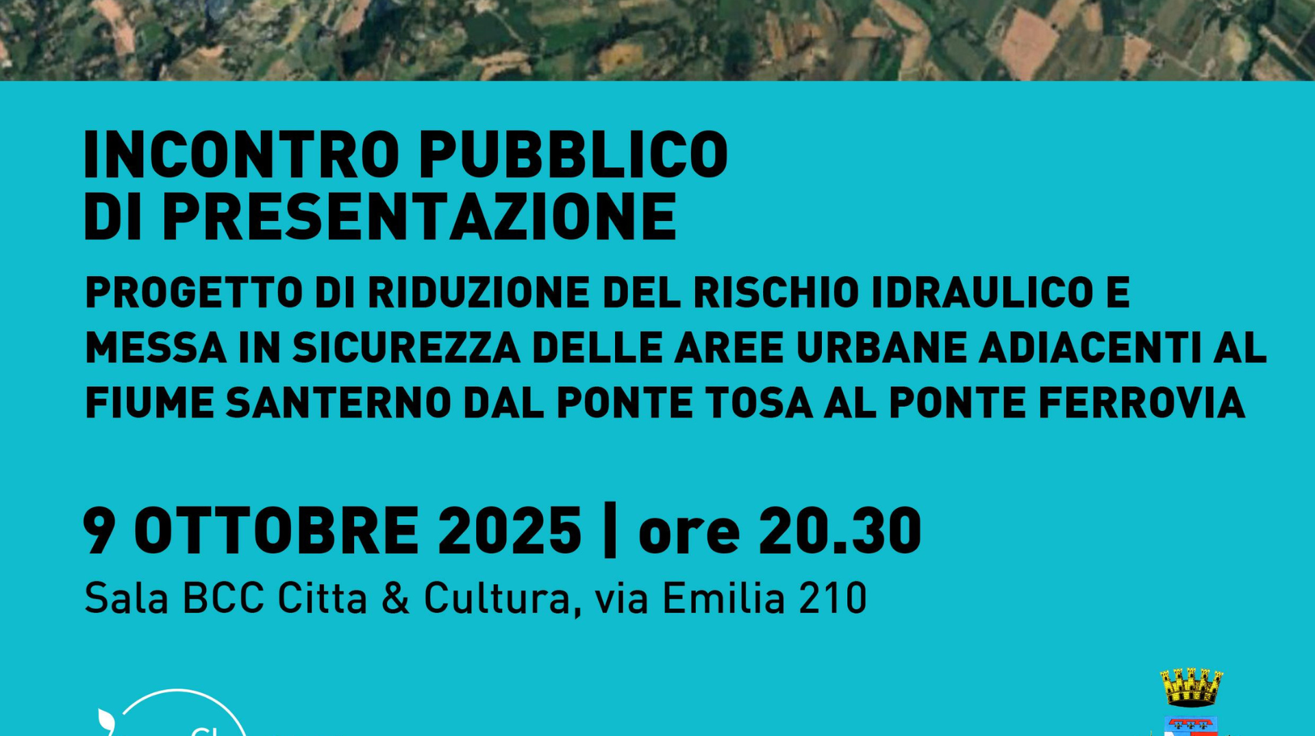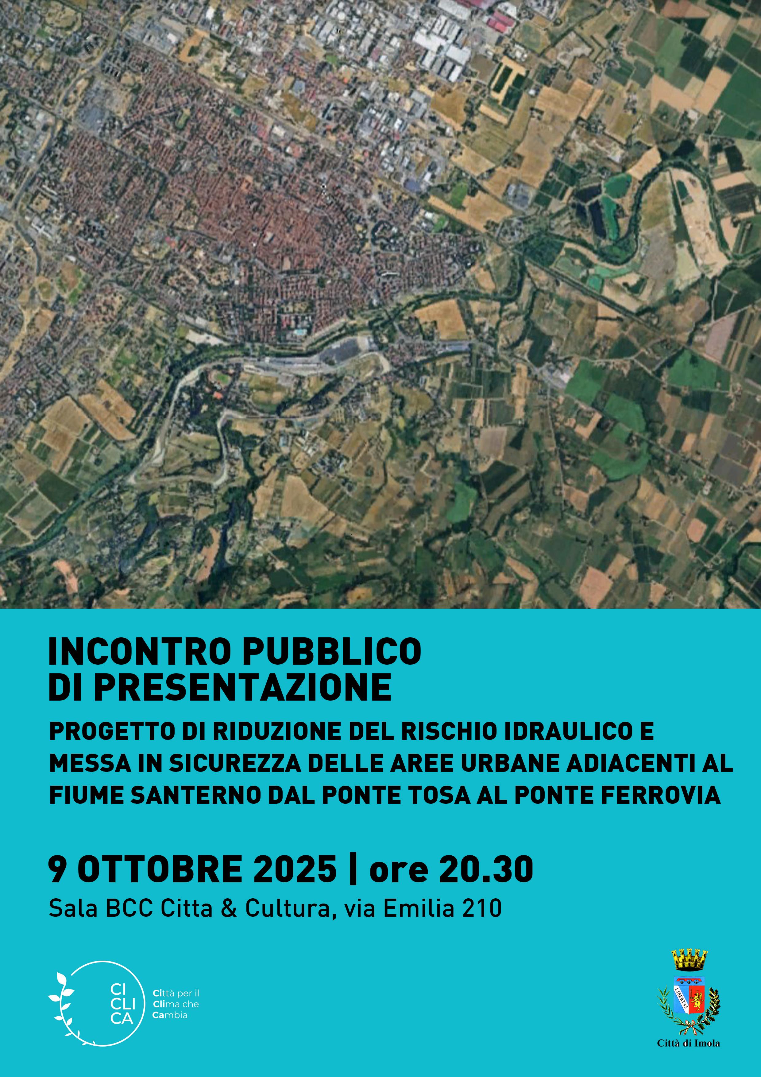 Il 9 ottobre alle ore 20.30, alla Sala Bcc Città e Cultura in via Emila 210 si terrà l’incontro pubblico di presentazione del Progetto di riduzione del rischio idraulico e messa in sicurezza delle aree urbane adiacenti al fiume Santerno dal ponte Tosa al ponte ferrovia.