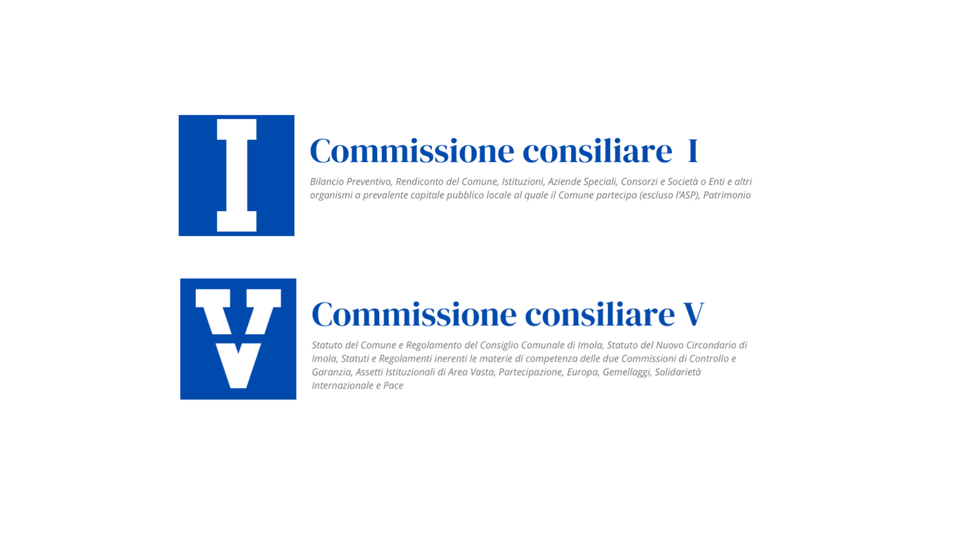 Statuto del Comune e Regolamento del Consiglio Comunale di Imola, Statuto del Nuovo Circondario di Imola, Statuti e Regolamenti inerenti le materie di competenza delle due Commissioni di Controllo e Garanzia, Assetti Istituzionali di Area Vasta, Partecipazione, Europa, Gemellaggi, Solidarietà Internazionale e Pace